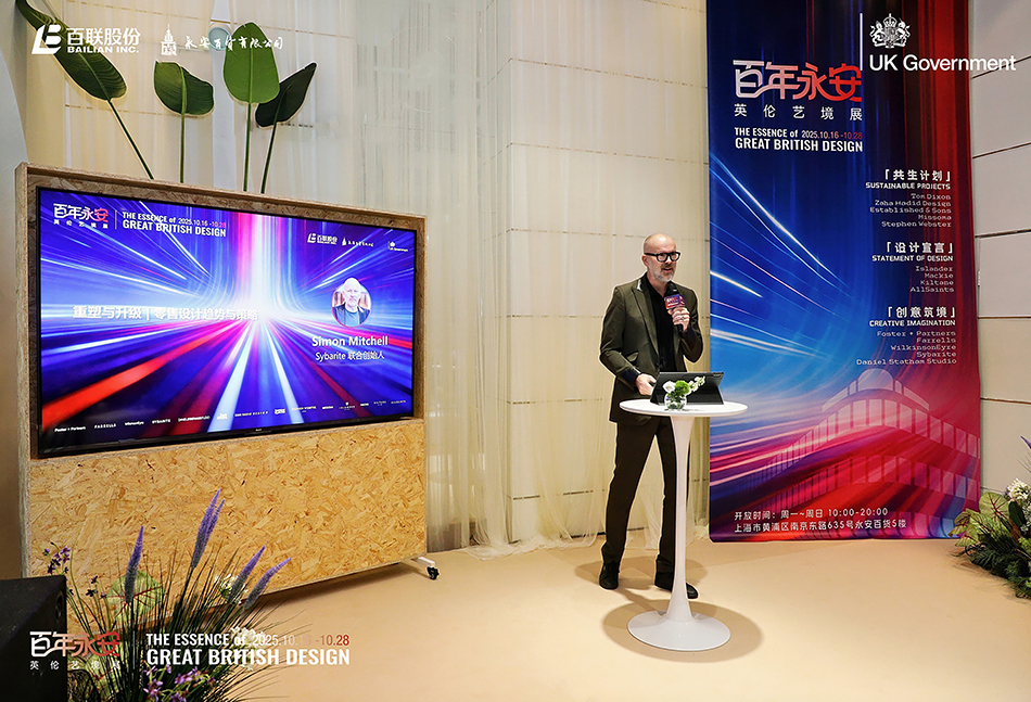 展览的开幕活动汇聚了来自设计界的杰出代表。Sybarite联合创始人 Simon Mitchell 分享了他对零售设计持续演变的洞察——从品牌重塑(Rebranding)、重构(Repurposing)到重新定位(Repositioning),这些策略不断启发着我们在亚洲以及英国的设计实践。